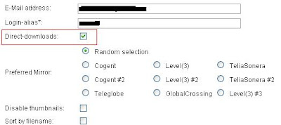 Since some people seem to have trouble enabling direct downloads on their Rapidshare login page, here are some screencaps (first goto rapidshare.com and login with your username and password):